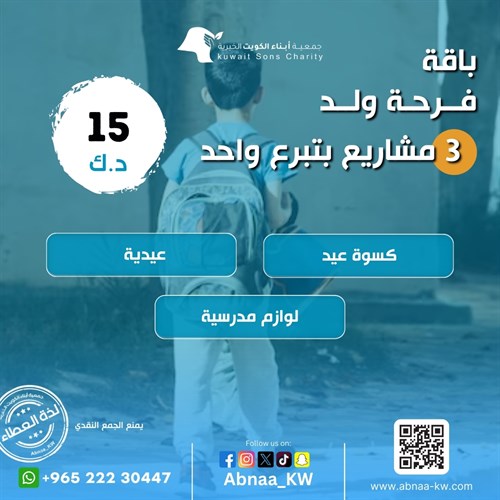 بتبرع واحد يمكنك المساهمة في : عيدية – كسوة فقير – لوازم مدرسية .